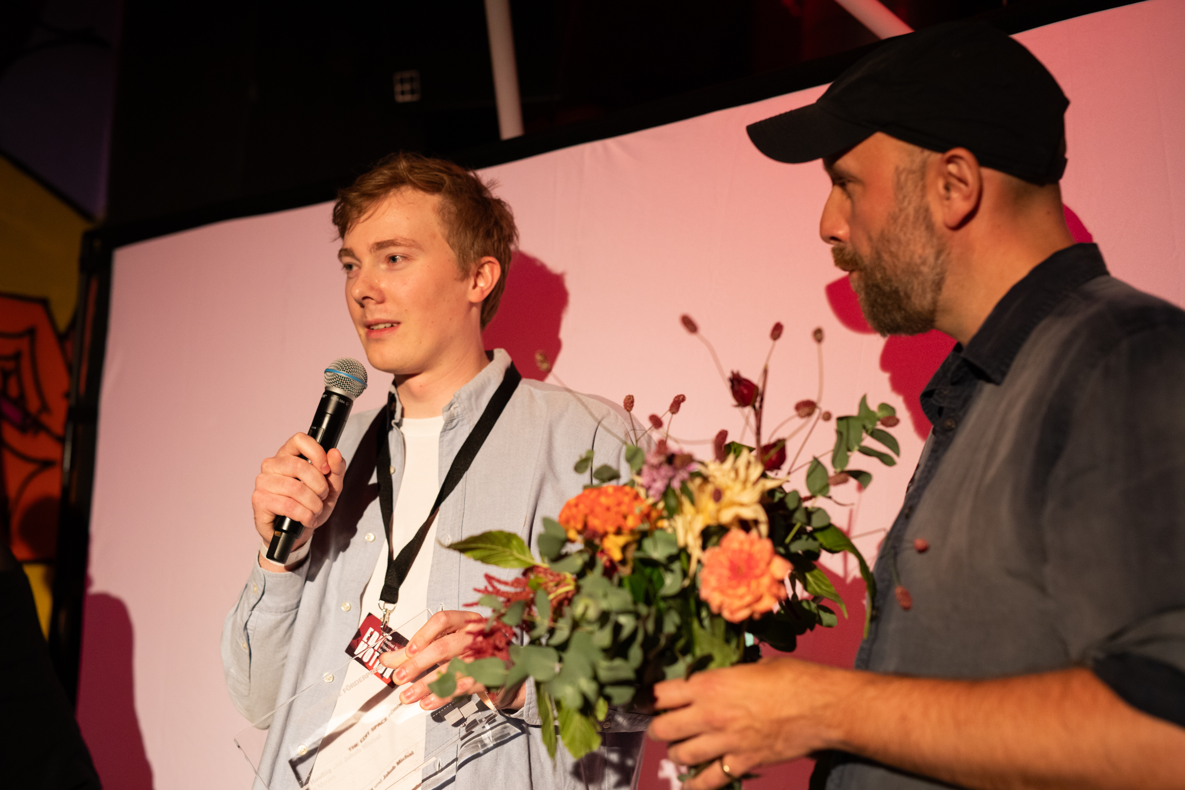 © Juliane Guder - Hannes Bruun nimmt den Preis für den besten Dokumentarfilmschnitt entgegen